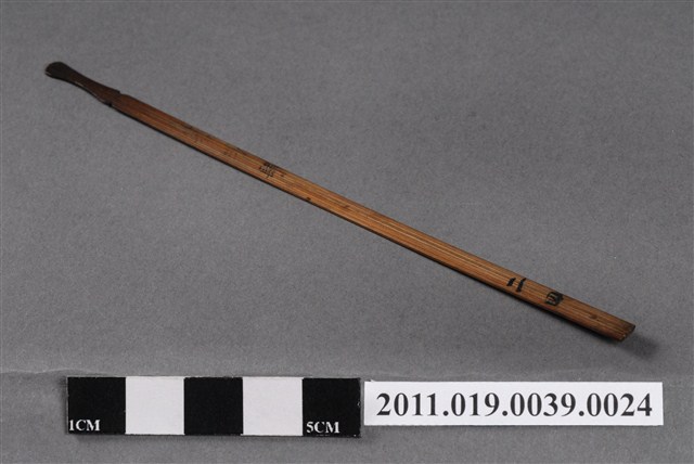 本件籤以竹片製成,形狀細長,頂端刻成葫蘆狀,使搗籤時容易抽取,亦表示「福氣」。中間有「第弍肆」、末端有「二四」字樣。依據籤的編號,可以找到籤詩。抽籤是占卜的其中一種方式,從商朝人就已開始運用龜甲、牛骨進行占卜;最晚於宋代就已經出現的籤詩是當時文人雅士參與抽籤活動時,所編寫的一些附會詩詞。