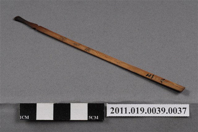 本件籤以竹片製成,形狀細長,頂端刻成葫蘆狀,使搗籤時容易抽取,亦表示「福氣」。中間有「第叁捌」、末端有「三八」字樣。依據籤的編號,可以找到籤詩。抽籤是占卜的其中一種方式,從商朝人就已開始運用龜甲、牛骨進行占卜;最晚於宋代就已經出現的籤詩是當時文人雅士參與抽籤活動時,所編寫的一些附會詩詞。