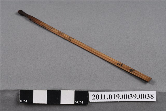 本件籤以竹片製成,形狀細長,頂端刻成葫蘆狀,使搗籤時容易抽取,亦表示「福氣」。中間有「第叁玖」、末端有「三九」字樣。依據籤的編號,可以找到籤詩。抽籤是占卜的其中一種方式,從商朝人就已開始運用龜甲、牛骨進行占卜;最晚於宋代就已經出現的籤詩是當時文人雅士參與抽籤活動時,所編寫的一些附會詩詞。
