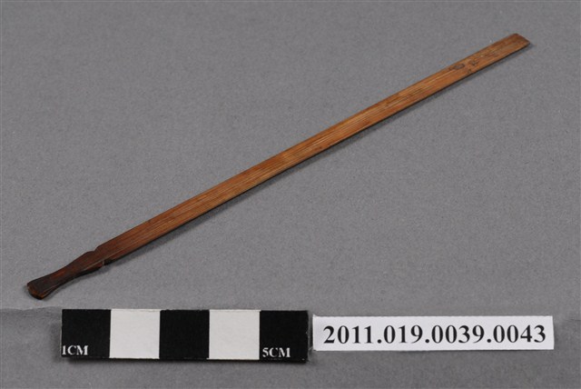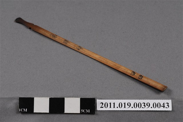 本件籤以竹片製成,形狀細長,頂端刻成葫蘆狀,使搗籤時容易抽取,亦表示「福氣」。中間有「第肆肆」、末端有「四四」字樣。依據籤的編號,可以找到籤詩。抽籤是占卜的其中一種方式,從商朝人就已開始運用龜甲、牛骨進行占卜;最晚於宋代就已經出現的籤詩是當時文人雅士參與抽籤活動時,所編寫的一些附會詩詞。