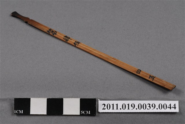 本件籤以竹片製成,形狀細長,頂端刻成葫蘆狀,使搗籤時容易抽取,亦表示「福氣」。中間有「第肆伍」、末端有「四五」字樣。依據籤的編號,可以找到籤詩。抽籤是占卜的其中一種方式,從商朝人就已開始運用龜甲、牛骨進行占卜;最晚於宋代就已經出現的籤詩是當時文人雅士參與抽籤活動時,所編寫的一些附會詩詞。