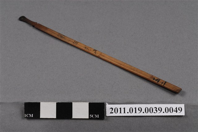 本件籤以竹片製成,形狀細長,頂端刻成葫蘆狀,使搗籤時容易抽取,亦表示「福氣」。中間有「第伍弍」、末端有「五二」字樣。依據籤的編號,可以找到籤詩。抽籤是占卜的其中一種方式,從商朝人就已開始運用龜甲、牛骨進行占卜;最晚於宋代就已經出現的籤詩是當時文人雅士參與抽籤活動時,所編寫的一些附會詩詞。