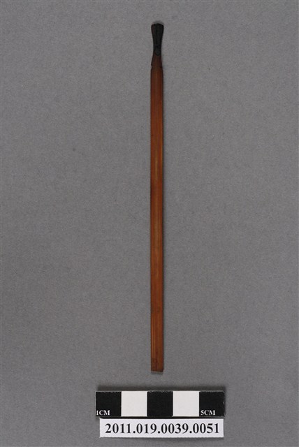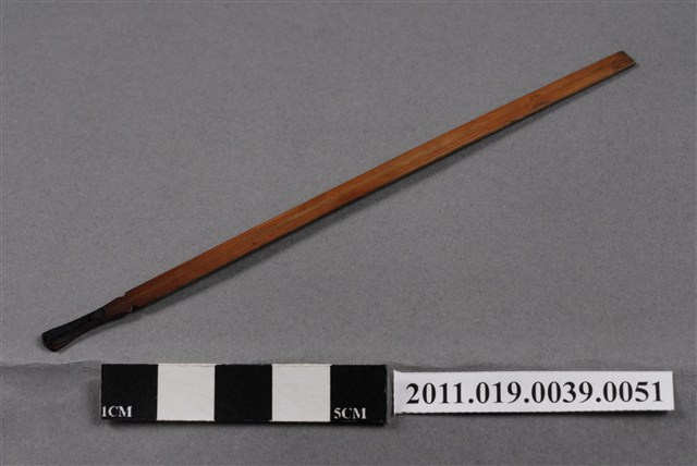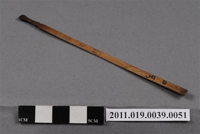 本件籤以竹片製成,形狀細長,頂端刻成葫蘆狀,使搗籤時容易抽取,亦表示「福氣」。中間有「第伍肆」、末端有「伍四」字樣。依據籤的編號,可以找到籤詩。抽籤是占卜的其中一種方式,從商朝人就已開始運用龜甲、牛骨進行占卜;最晚於宋代就已經出現的籤詩是當時文人雅士參與抽籤活動時,所編寫的一些附會詩詞。