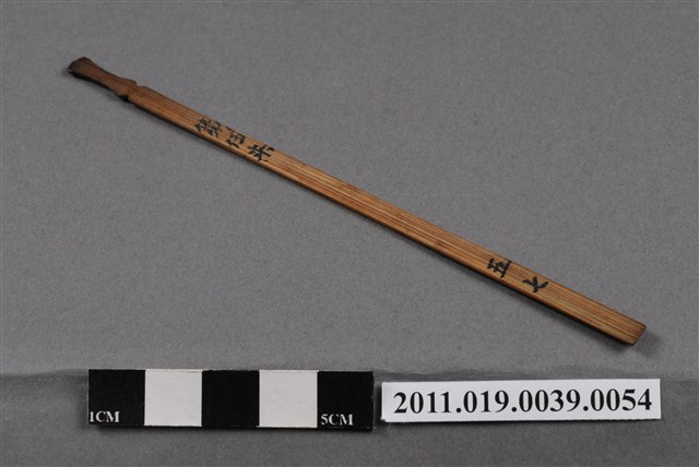 本件籤以竹片製成,形狀細長,頂端刻成葫蘆狀,使搗籤時容易抽取,亦表示「福氣」。中間有「第伍柒」、末端有「五七」字樣。依據籤的編號,可以找到籤詩。抽籤是占卜的其中一種方式,從商朝人就已開始運用龜甲、牛骨進行占卜;最晚於宋代就已經出現的籤詩是當時文人雅士參與抽籤活動時,所編寫的一些附會詩詞。