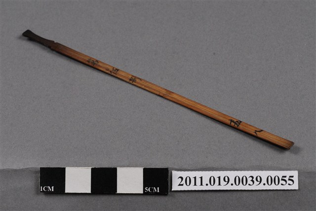 本件籤以竹片製成,形狀細長,頂端刻成葫蘆狀,使搗籤時容易抽取,亦表示「福氣」。中間有「第伍捌」、末端有「五八」字樣。依據籤的編號,可以找到籤詩。抽籤是占卜的其中一種方式,從商朝人就已開始運用龜甲、牛骨進行占卜;最晚於宋代就已經出現的籤詩是當時文人雅士參與抽籤活動時,所編寫的一些附會詩詞。