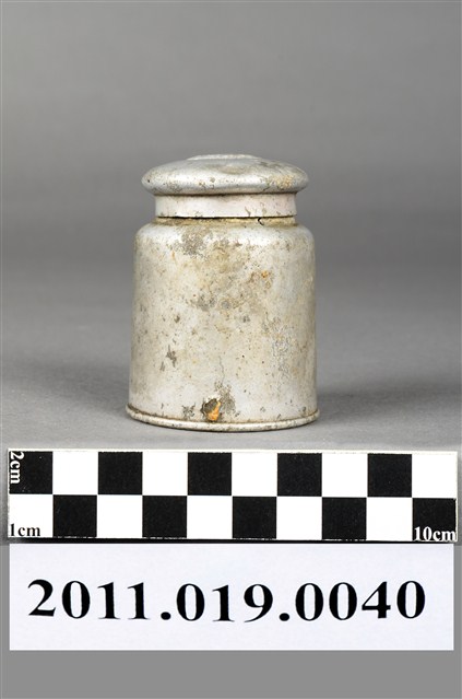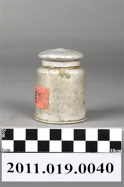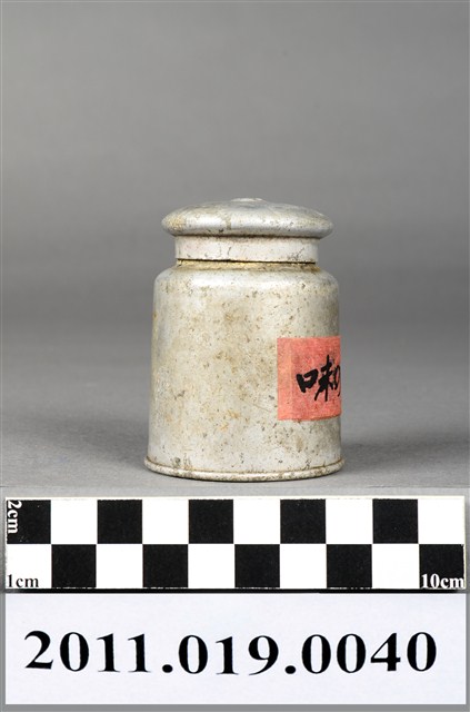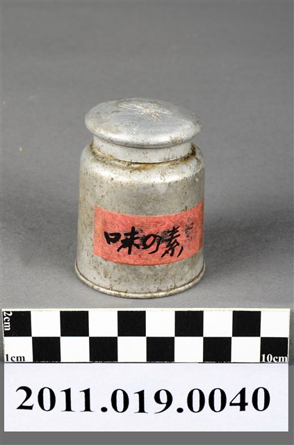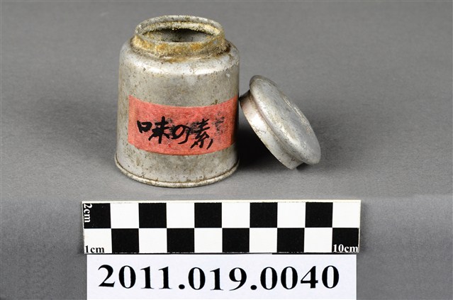本件味之素製附蓋味素鋁罐可分為罐蓋與罐身2部件,均以鋁金屬製作而成,主要作為裝盛味素使用的罐子。罐蓋頂面呈圓弧形,中央處打印身穿印有味之素字樣的圍裙之婦女圖像為味之素商標。罐蓋口內縮呈圓形立唇,可與罐身口部套合。罐身呈圓形立口,折肩,器身平直呈素面圓筒狀。於器身一側黏貼有粉紅色紙膠帶,並以黑筆書寫「味の素」。