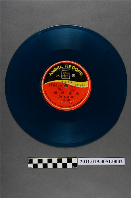 1.本物件為高雄民謠專輯,塑膠材質。該唱片外觀為黑色,中央可見「ANGEL RECORD」、「天使」、「高雄民謠」、「版權所有 請勿翻印」、「Hi Fi立体聲 NL 3 B」、「塩埕區長」、「郭萬枝調」、「上篇」、「53.2.25」字樣。