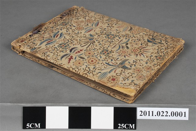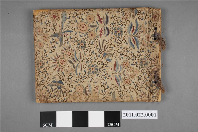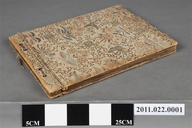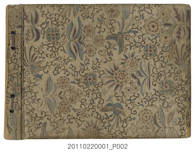 1.本組物件為金木善三郎家族相簿,內含數十張金木善三郎各式生活照片,相簿外觀完整,米色外皮由粗麻繩裝訂製成,相簿外觀華麗,有著諸多花鳥圖騰裝飾,目測無法確認其材質,外觀無明顯損壞。