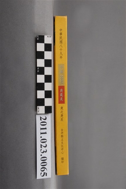 封面:千禧2000典藏美年曆手冊,由臺中縣長於89年3月7日宣佈捐贈者為第一任臺中縣文化局局長,記載了:文化局於3月1日成立、港區藝術中心籌備會議、2000年臺中縣媽祖文化觀光節(第一屆)、局務會議、縣務會議、古蹟規劃修復、文化中心、藝術中心及文化局等經費分配情形。