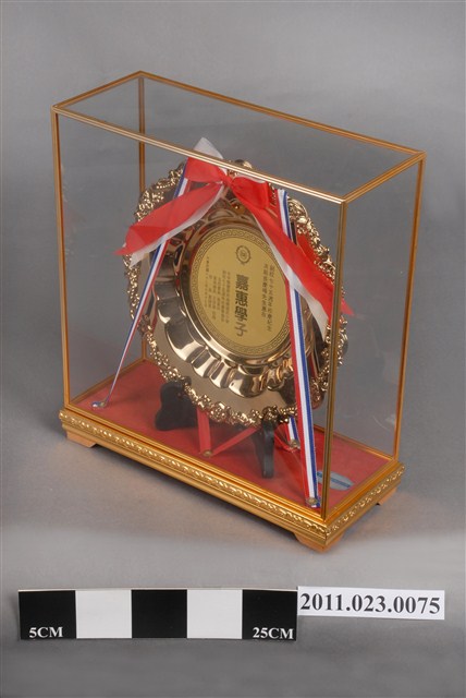 由臺中縣豐原市瑞穗國小75週年校慶致贈捐贈者,此時捐贈者時任臺中縣教育局局長。外罩有玻璃框盒,五面為玻璃。