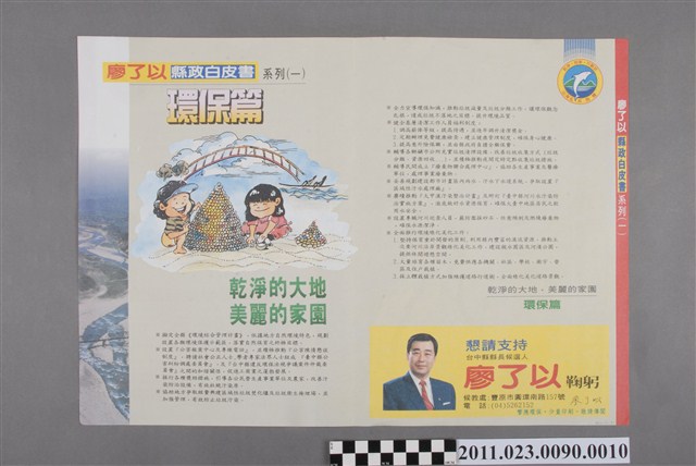 廖了以1993年競選第12任臺中縣長文宣傳單「縣政白皮書系列一」