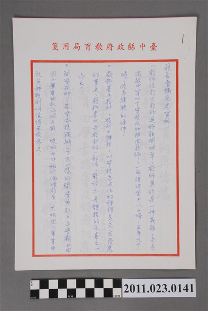 2011.023.0141 臺中縣政府教育局局長洪慶峰撰「校長會議參考資料」