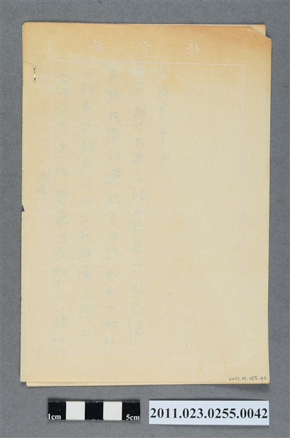 洪慶峰於1997年登記國民黨臺中縣長提名時,制定政策的手稿資料,論述如何「追求祥和的福利文化」。共5頁。以「臺中縣政府便箋」書寫。