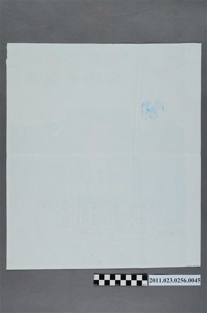 洪慶峰1997年提名國民黨臺中縣長候選人之選舉文宣設計打樣稿,計有2款排版方式,本款為第2款,洪慶峰照置於正中間,文字為上至下為:「提拔洪慶峰、再創新高峰,台中縣長檢覆(錯字,應為覈)合格,洪慶峰鞠躬,現任:台中縣政府教育局局長」。