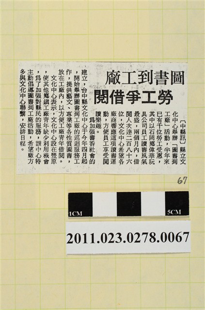 2011.023.0278.0067 中國時報75年11月9日第6版「圖書到工廠 勞工爭借閱」