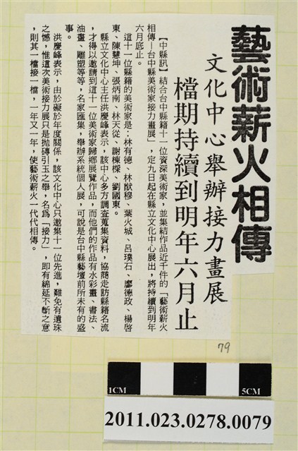 2011.023.0278.0079 中國時報77年9月9日第10版「藝術薪火相傳 文化中心舉辦接力畫展」