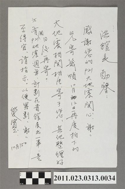 2011.023.0313.0034 王雙寶致洪慶峰1999年10月15日書信