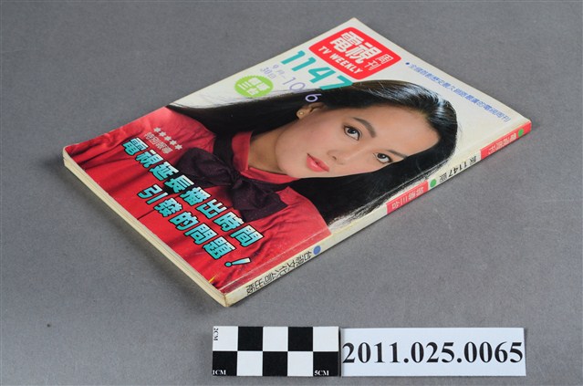 1.本物件為電視周刊TTV WEEKLY第1147期,封面照片為明星鄭碧蓮。由物件正面可見「電視周刊TTV WEEKLY 第1147期」、「9月30日-10月6日」字樣。其目錄章節可見包括「特別報導」(如:電視延長播出時間引發的問題)、「電視論壇」(如:以開發人才提昇電視節目)、「三台節目焦點」(如:冷月 孤星 劍布景堂皇逼真)、「綜合專欄」(如:看電視談電視 請多錄製市井小民的故事)、「人物專訪」(如:鄭碧蓮唱歌演戲樣樣來)、「彩色之頁」(如:明星周曆 陸一嬋)。該周刊內頁亦可見刊物發行所為台視文化事業公司,地址為臺北市八德路三段二號)。