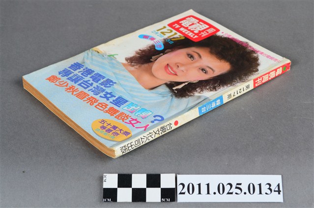 1.本物件為電視周刊TTV WEEKLY第1217期,封面照片為明星黃香蓮。由物件正面可見「電視周刊TTV WEEKLY 第1217期」、「2月2日-2月8日」字樣。其目錄章節可見包括「影視焦點」(如:香港電影專讓台灣女星出糗)、「明星熱線」(如:宋岡陵未扮西施先打退堂鼓)、「節目快報」(如:楊麗花特別節目有看投)、「綜合專欄」(如:電視論壇)。該周刊內頁亦可見刊物發行所為台視文化事業公司,地址為臺北市八德路三段二號)。