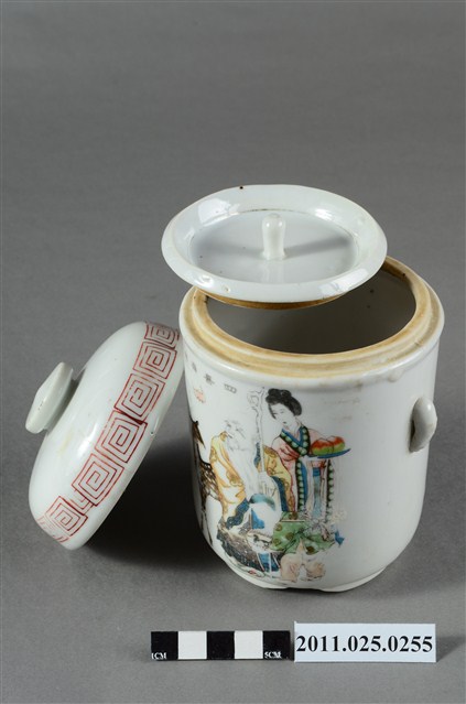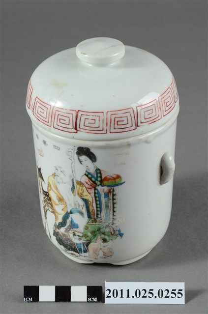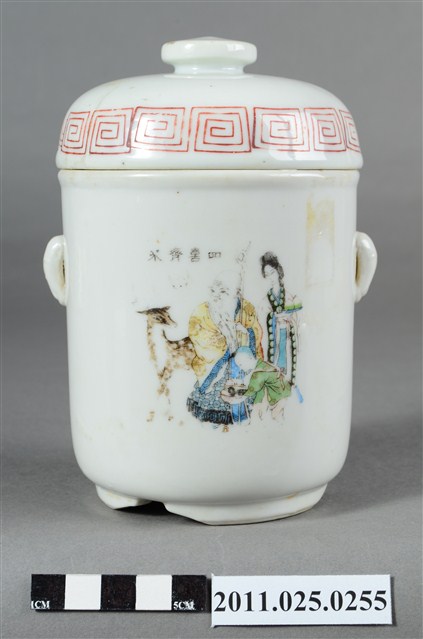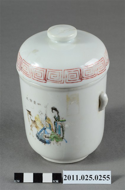 鄭家用以喝蔘汁之瓷杯。作法是將人蔘或蔘鬚加水入鍋蒸煮。