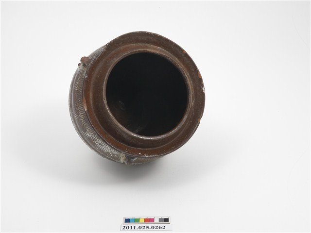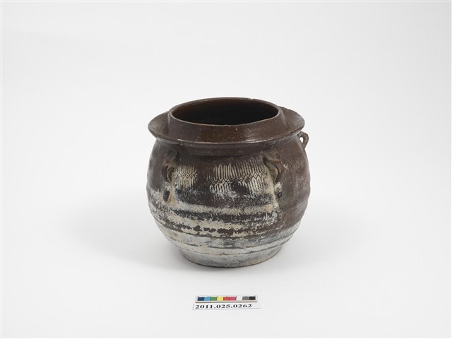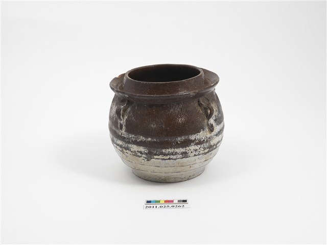 2011.025.0262 褐釉壓印紋雙簷帶繫罐