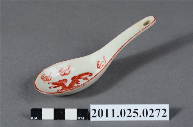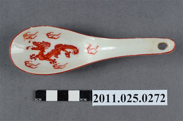 2011.025.0272 紅色龍紋瓷湯匙