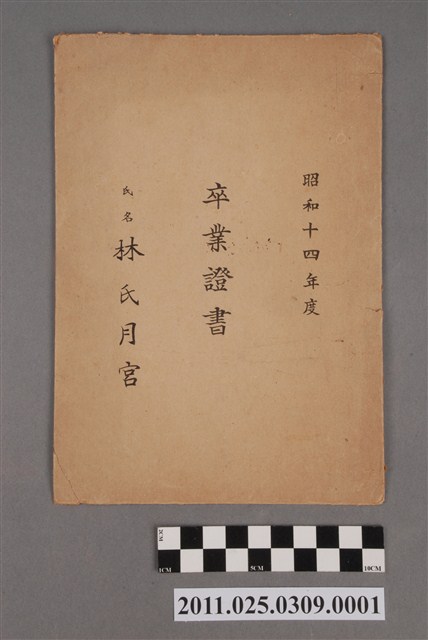 2011.025.0309.0001 林月宮屏東高等女學校畢業證書封套