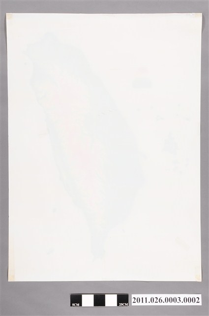 1. 本物件為以臺灣地形圖之二為主題之地圖膠片,其正面為高程分層設色圖之臺灣地形圖,繪製區域包含嘉南平原、蘭陽平原、雪山山脈、大肚台地、八卦台地、中央山脈、阿里山山脈、玉山山脈、花東縱谷及海岸山脈等地形,並以綠色、黃色、咖啡色之漸層標示地勢不同,島嶼圖型之左方有以紅色、咖啡色、橘色、黃色、綠色堆疊漸層的山形圖樣,應為表示地勢高低不同之圖例。2. 此圖總編輯吳信政教授為師大地理系退休教授,在地理學界與地圖學界有極高學術地位。吳教授製圖大多採用渲染法,透過渲染繪製而成的地圖,可以讓地形高度更清楚也更容易閱讀。過往國中地理課本中的地圖,大多出於吳信政教授之手,再加上分層設色圖,讓色彩的配合使地圖具有一定的立體感,彌補了等高線表示法的不足。