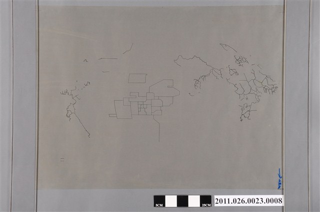 1. 本物件為世界地形圖之八為主題之膠片,其正面為黑白色調之膠片,沒有繪製陸塊之輪廓,由右至左有複數線條,線條對應之區域由右至左應為北美洲、南美洲、太平洋、歐亞大陸、非洲,僅太平洋區域之線條呈現幾何圖形,及非洲區域之線條可觀察陸塊大致輪廓,左下角標示有藍色箭頭「↓」之符號,以及藍色無法辨識之文字。2. 此圖總編輯吳信政教授為師大地理系退休教授,具有地圖學、地圖設計、遙測學等專長;橫麥卡托投影法由佛蘭德的地圖學家Gerardus Mercator發明,為圓筒投影,將圓筒相切於赤道位置進行正形投影,具有緯線在地圖上為直線,便於航海之優點,但對於高緯度地區則會因正形投影而間格變大,地區變形的缺點。。