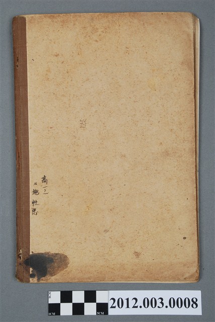 本文物為《初等理科書高等科第一學年》。封面印有初等理科書、高等科第一學年用、臺灣總督府字樣。封底有手寫之高一ノ一 16 施性忠字樣。內容有動植物、人體、礦物、傳染病與藥品、物體力學等各方面的近代科學知識。目錄共有28項,例有動植物の分類、樟腦、晒粉、血液と循環器、鑛石と鑛山、硝子、物體の運動等。本書由臺灣總督府,於昭和12年(1937)3月31日發行。