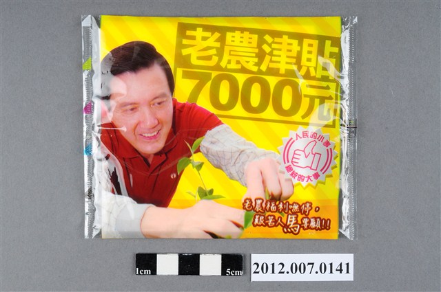 2012.007.0141 中華民國第13屆總統選舉候選人馬英九「老農津貼7000元」競選宣傳面紙