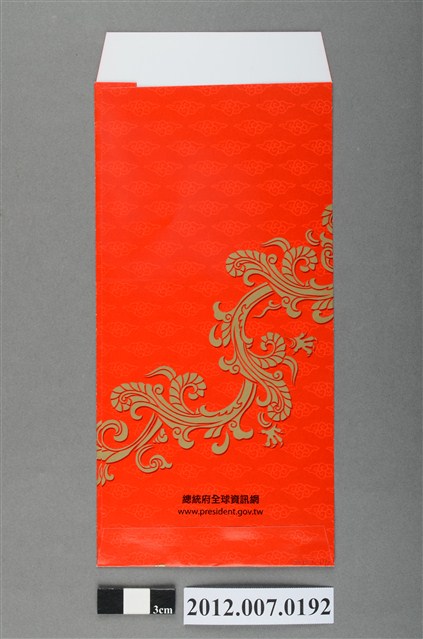 一組五個,紅包袋正面印有「壬辰 龍騰虎躍 福滿寶島 馬英九蕭萬長同賀」,背面印上「總統府全球資訊網www.president.gov.tw」,應為總統府發送給民眾。