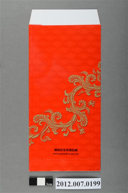 一組五個,紅包袋正面印有「壬辰 龍騰虎躍 福滿寶島 馬英九蕭萬長同賀」,背面印上「總統府全球資訊網www.president.gov.tw」,應為總統府發送給民眾。