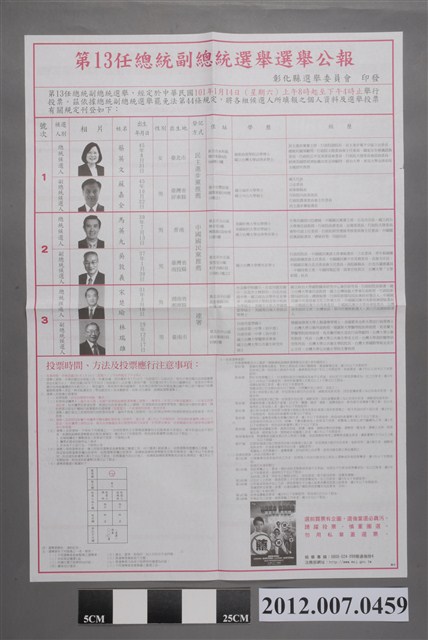 2012.007.0459 彰化縣選舉委員會印發《第13任總統副總統選舉選舉公報》