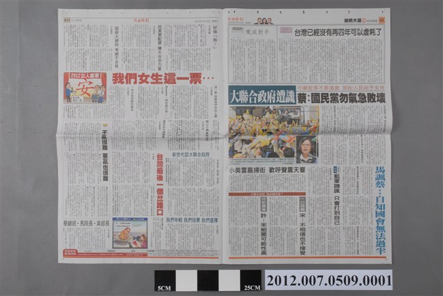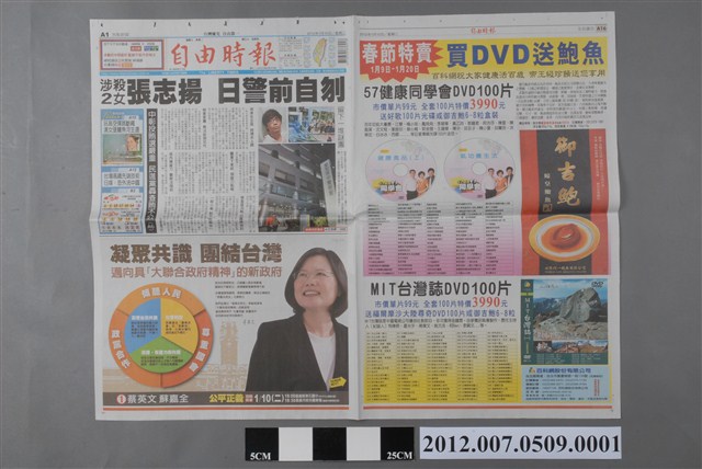 2012.007.0509.0001 自由時報社出版《自由時報》2012年1月10日A1、A2、A15、A16版