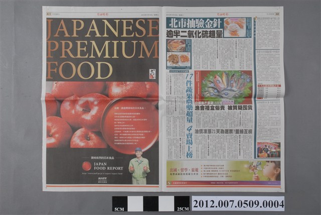 此為2012年1月10日發行的《自由時報》A7、A8、A11、A12版。內容要目計有〈新住民挺小英 怨馬瞧不起她們 要成關鍵少數〉、〈籲遊子返鄉 綠營大催票〉、〈投票日上班 雇主須給薪給假〉、〈選舉症候群 焦慮亢奮睡不著〉、〈北市抽驗金針 逾半二氧化硫超量〉、〈北市去年下半年抽檢 17件蔬果農藥超量 4賣場上榜〉、〈白鯧每斤漲破1500元 漁會禮盒俗賣 被質疑囤貨〉、〈油價凍漲2天為選票?藍綠互槓〉、〈YES 123求職網調查 春節前淡季 求職者卡位好時機〉、〈教師減課、生師比調高 今年想當老師 機會多一點〉、〈日媒報導 高鐵先端技術 可能外流中國〉等。 此物件刊載2012年的第13任總統副總統選舉的相關報導,此次選舉由代表中國國民黨的馬英九、吳敦義;代表民主進步黨的蔡英文、蘇嘉全;代表親民黨的宋楚瑜、林瑞雄參與選舉。在選舉當中,中國與臺灣的「兩岸政見議題」成為人民選舉的重要觀察指標(王顥穎,2015:48-75)。另外、「塑化劑」、「宇昌案」、「夢想家音樂劇」、「三隻小豬」等等,都成為影響當時人民投票意向的事件。最終,代表國民黨的馬英九、吳敦義組合當選,馬英九成功連任第13任總統。 《自由時報》由聯邦集團林榮三經營。1988年報禁開放後,《自由時報》由地方媒體轉型為全國性報紙。《自由時報》在聯邦集團龐大的資源挹注下,在1997年前後大幅擴展訂戶數,開始與《聯合報》、《中國時報》並列為臺灣三大報。
