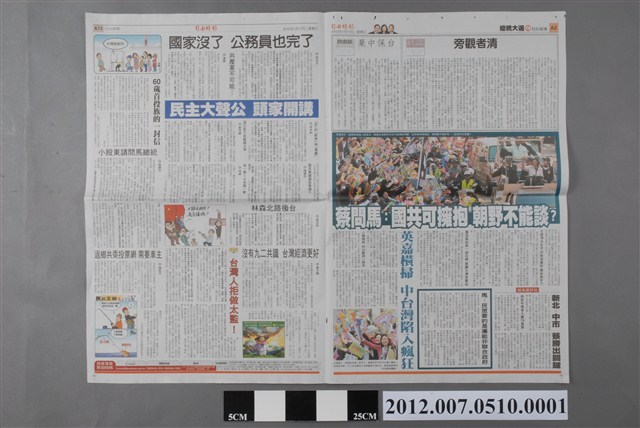 自由時報社出版《自由時報》2012年1月11日A1、A2、A15、A16版