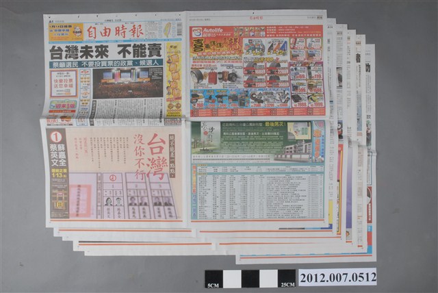 2012.007.0512.0001 自由時報社出版《自由時報》2012年1月13日A1、A2、A15、A16版
