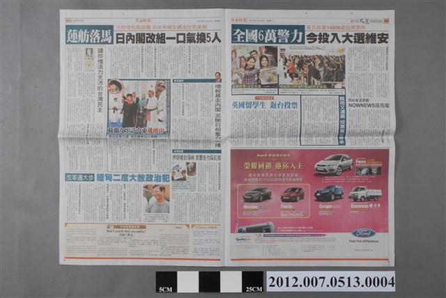自由時報社出版《自由時報》2012年1月14日A7、A8、A11、A12版