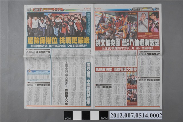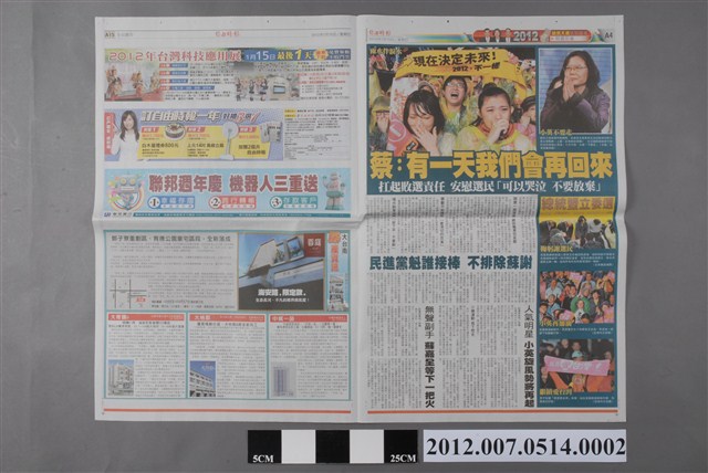 2012.007.0514.0002 自由時報社出版《自由時報》2012年1月15日A3、A4、A15、A16版