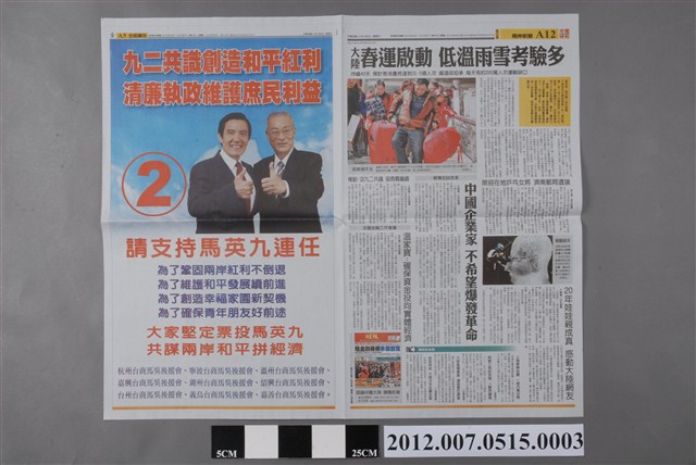 2012.007.0515.0001 中國時報社出版《中國時報》2012年1月8日A1、A2、A15、A16版