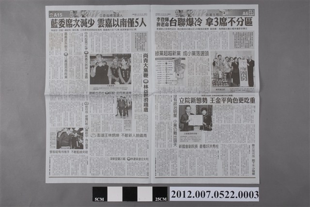 2012.007.0522.0003 中國時報社出版《中國時報》2012年1月15日A5、A6、A15、A16版