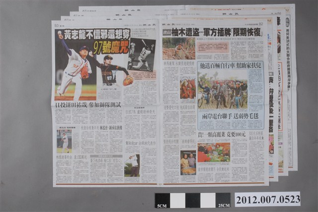 此為2012年1月8日發行的《聯合報》A、B版,此物件共計4張、15個版面。