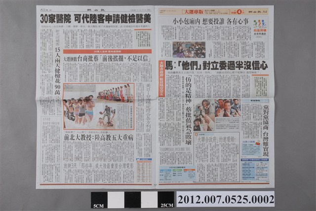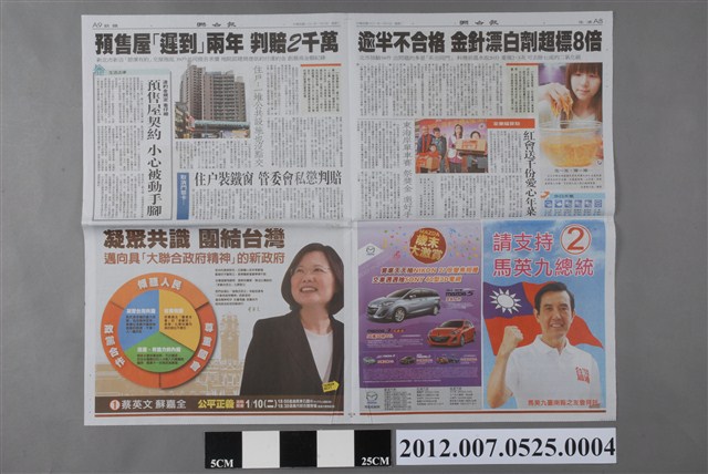 2012.007.0525 聯合報社出版《聯合報》2012年1月10日版第13任總統副總統選舉報導