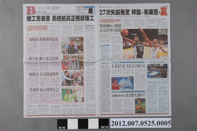 2012.007.0525.0005 聯合報社出版《聯合報》2012年1月10日版B1、B2、B3、B4版