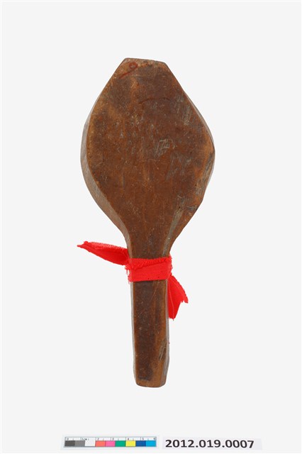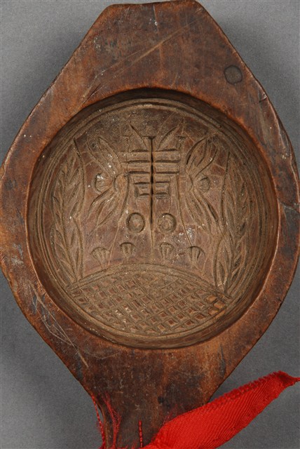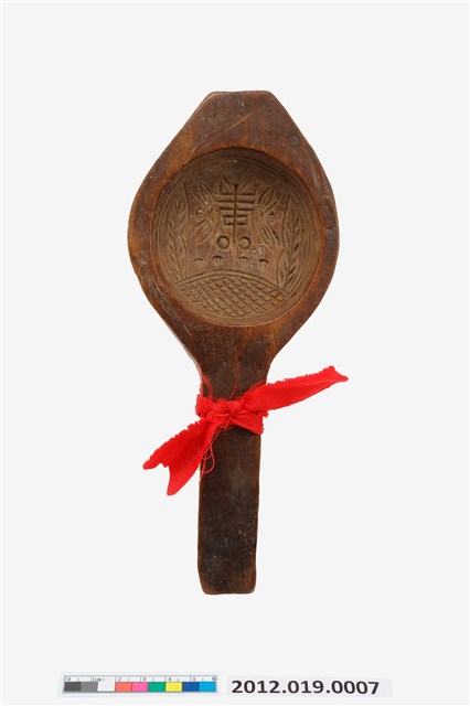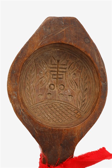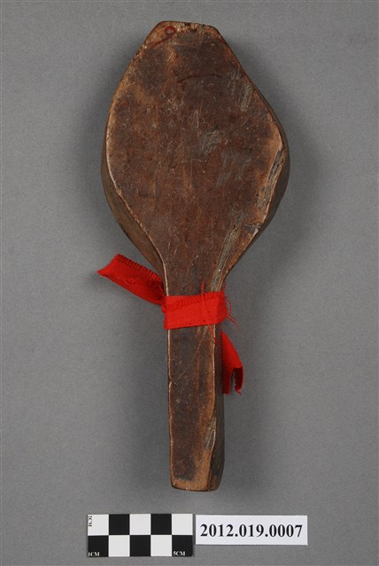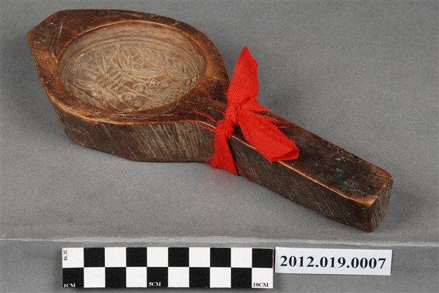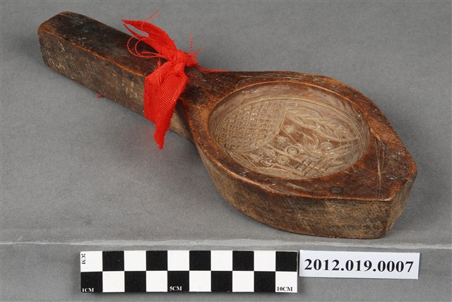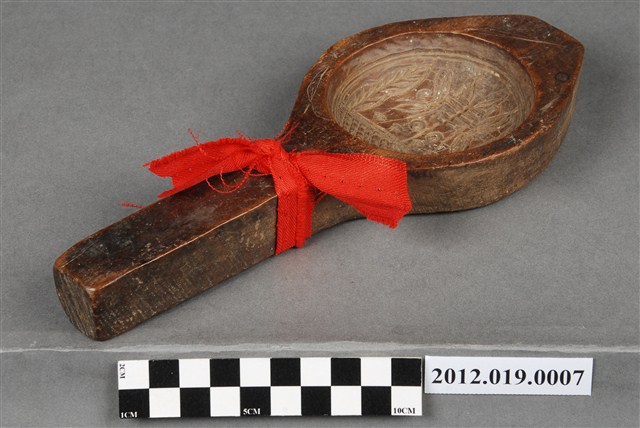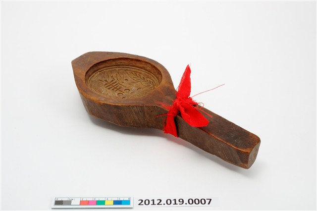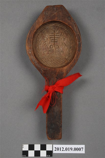 2012.019.0007 圓形單面雕花草壽字紋帶柄餅印