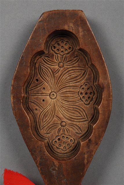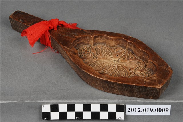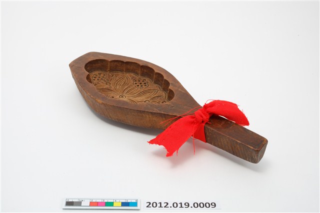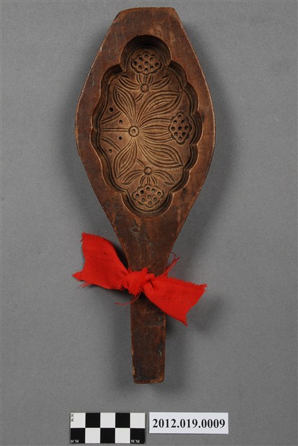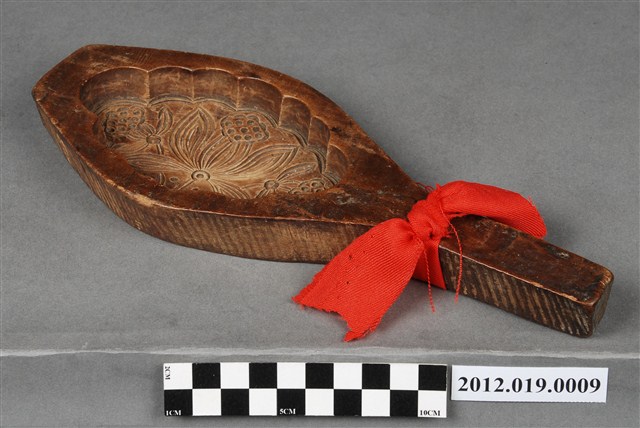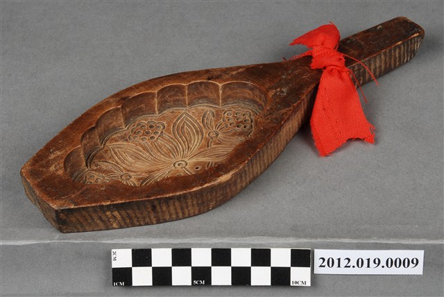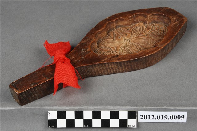 2012.019.0009 菱形單面雕蓮花蓮蓬紋帶柄餅印