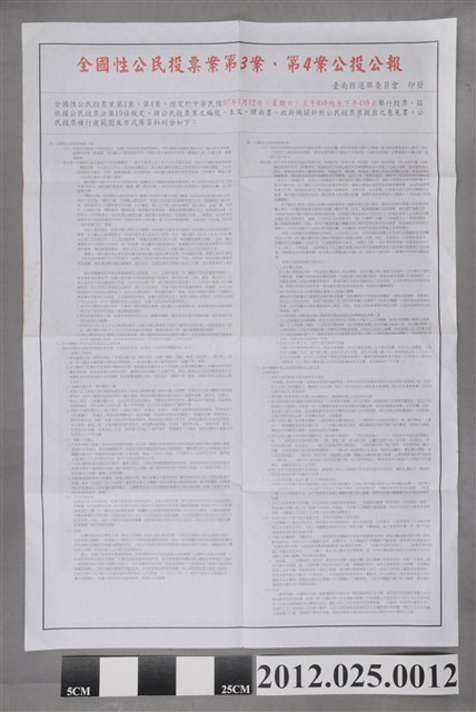 2012.025.0012 全國性公民投票案第3案、第4案公投選舉公報