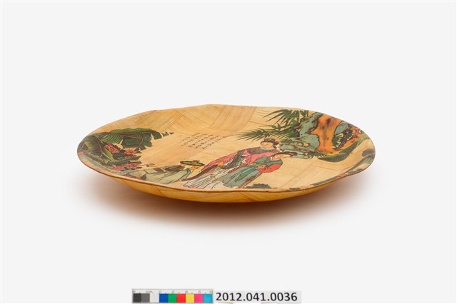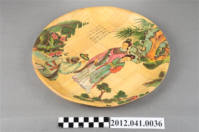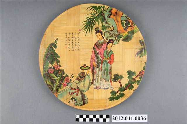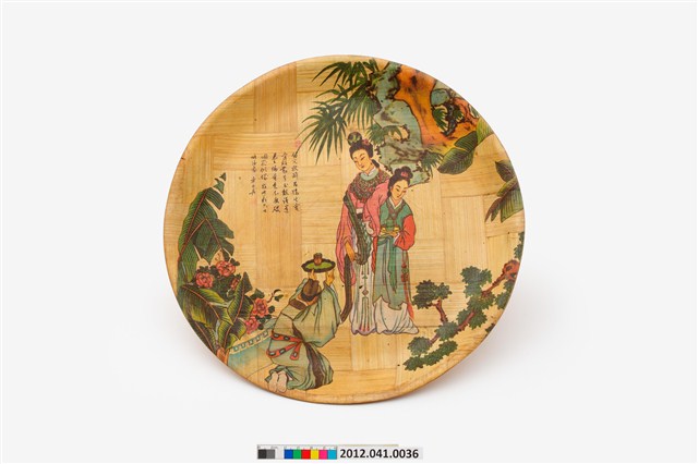 2012.041.0036 兩女一男奉茶圖竹製圓盤