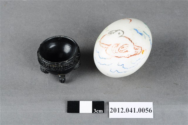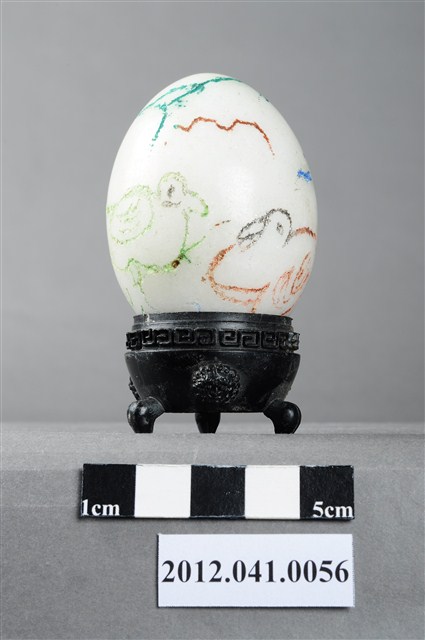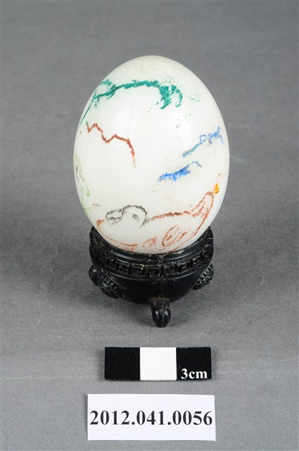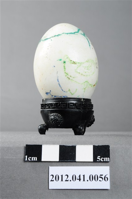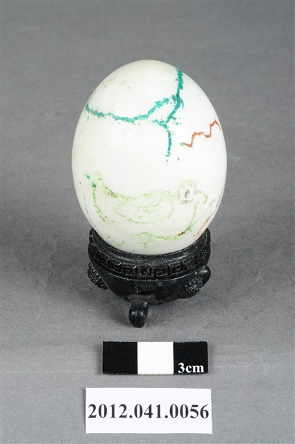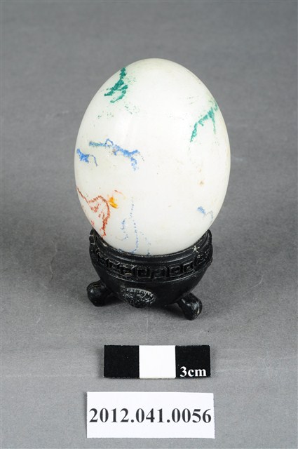 2012.041.0056 刻有鴛鴦戲水的蛋形磨光石頭